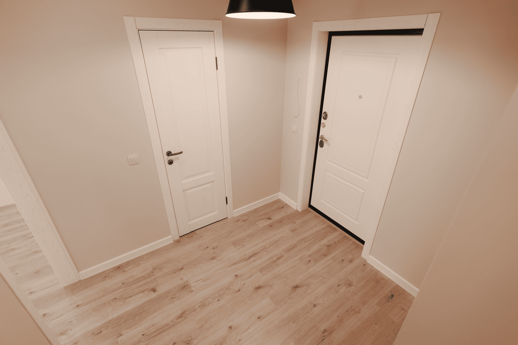 Описание: Покраска стен, установка натяжных потоков, укладка ламината.